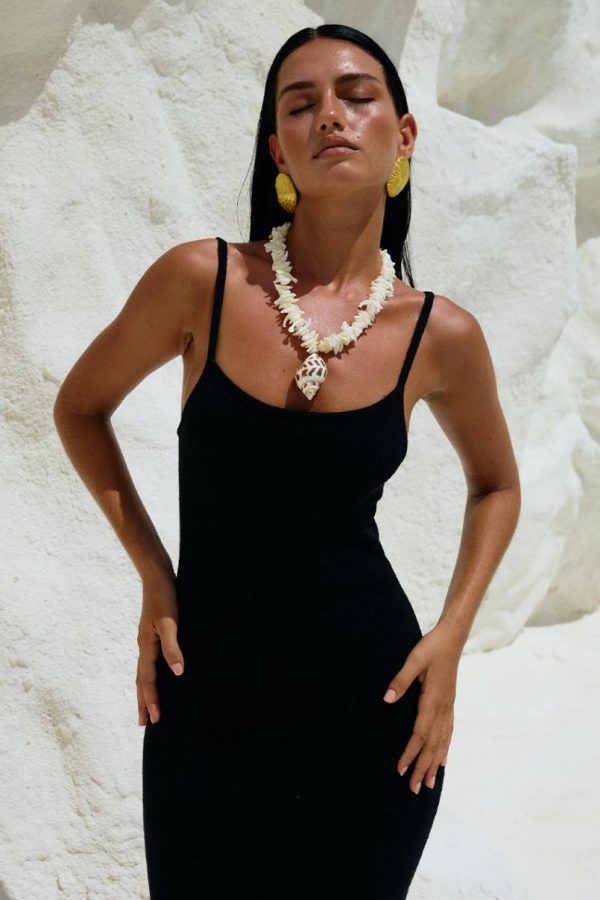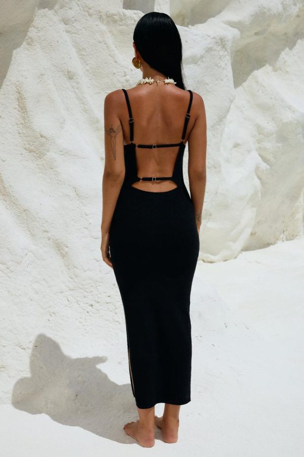 Elevate your style with our stunning Akari Midi Dress, featuring a chic open back and delicate strap detailing that creates an effortlessly feminine silhouette perfect for transitioning from daytime elegance to evening sophistication.