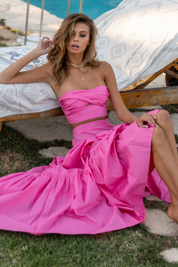 Meet your new go-to statement piece for any special occasion. Our Ayla Maxi Skirt features a stunning hoop silhouette with elegant maxi length, perfect for creating unforgettable looks. Designed with a discreet side zipper for smooth wear, adjustable elastic back waistband for personalized comfort, and crafted without lining for lightweight ease. Pair effortlessly with our matching Ayla Top for a complete ensemble. 100% Cotton. Please refer to care label for garment care instructions.