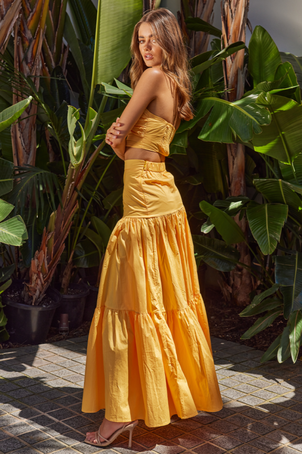 Our Ayla Top features a cropped cut, twisted detailing on the bust, a fitted bodice with shirring at the back and a double layer of body fabric. This garment has lining and stretch. 100% Cotton. Please refer to care label for garment care instructions. Colours may appear slightly different to the website due to lighting, computer picture resolution and monitor settings.