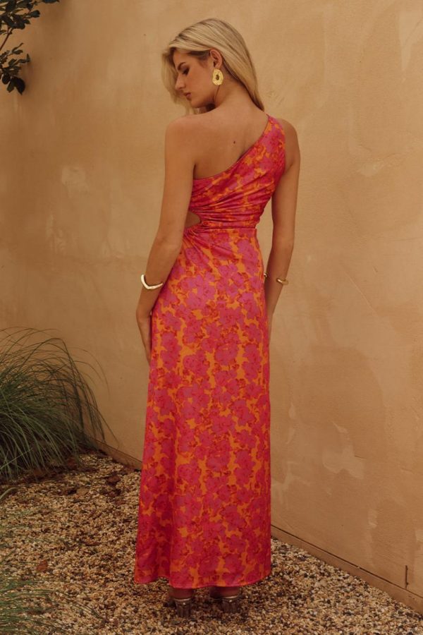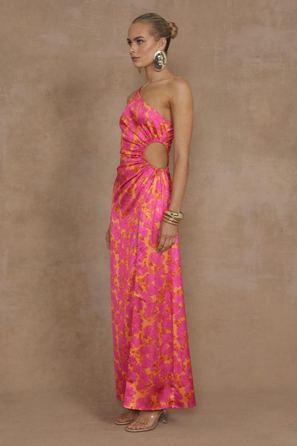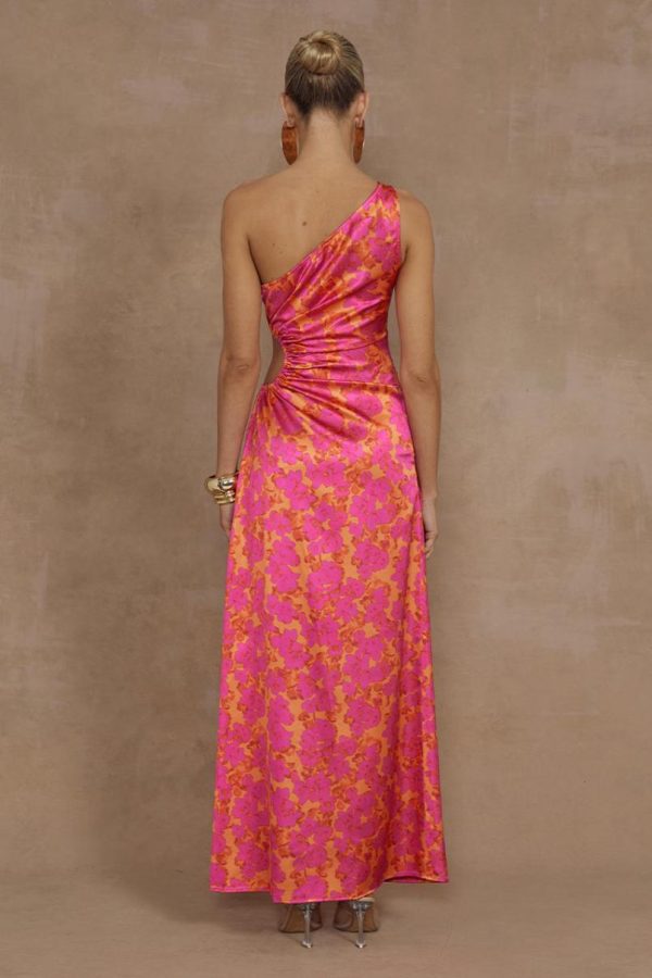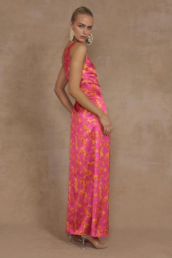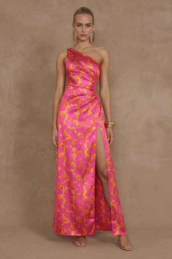 Make a stunning entrance with our Barzilio Dress, featuring a dramatic high split and eye-catching asymmetrical neckline in vibrant feminine prints. Perfect for weddings, formal events, or race day celebrations, this dress delivers unforgettable style.