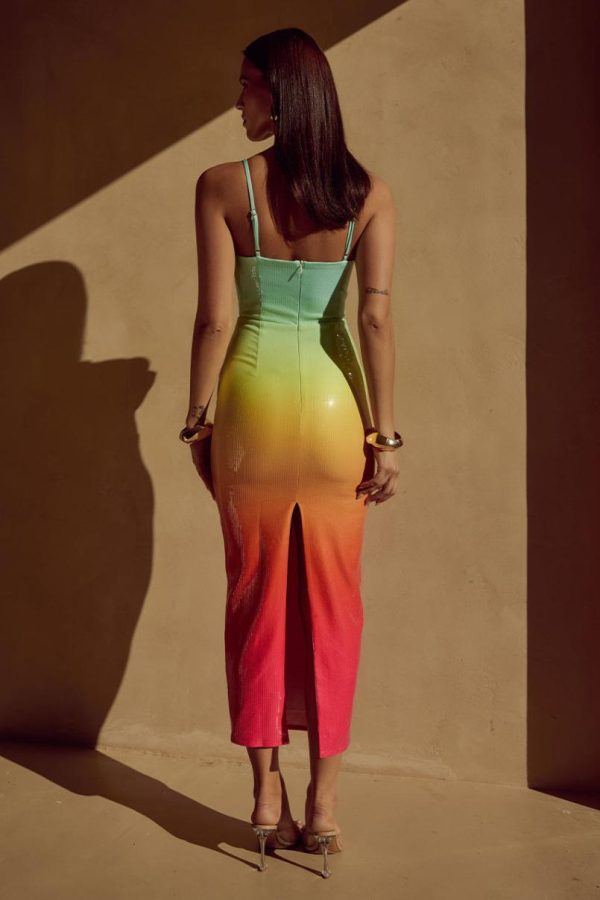 Elevate your evening wardrobe with our stunning Benito Midi Dress, featuring a dazzling sequin overlay that catches the light with every movement. This show-stopping piece is designed to make you feel confident and radiant for any special occasion.