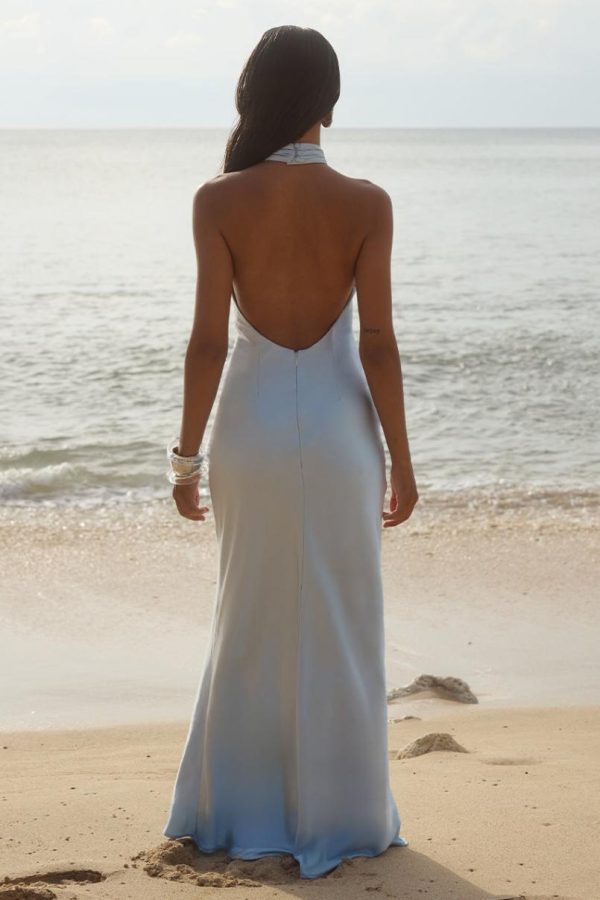 Designed with an elegant halter neckline and sophisticated open back, our Brigitte Maxi Dress flows gracefully over your silhouette for a truly feminine and flattering appearance.