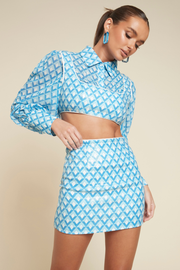 Our Carla Top features a crop length, sleeveless, straight across neckline, wide straps and zipper. This garment has lining and no stretch. **Due to the delicate hand stitching of the sequins, any variations are a part of this garment’s individual beauty and are not considered faults.** Body fabric, Lining : 97% Polyester, 3% Spandex. Please refer to care label for garment care instructions, Colours may appear slightly different to the website due to lighting, computer picture resolution and monitor settings. Print placement may vary between each individual item.