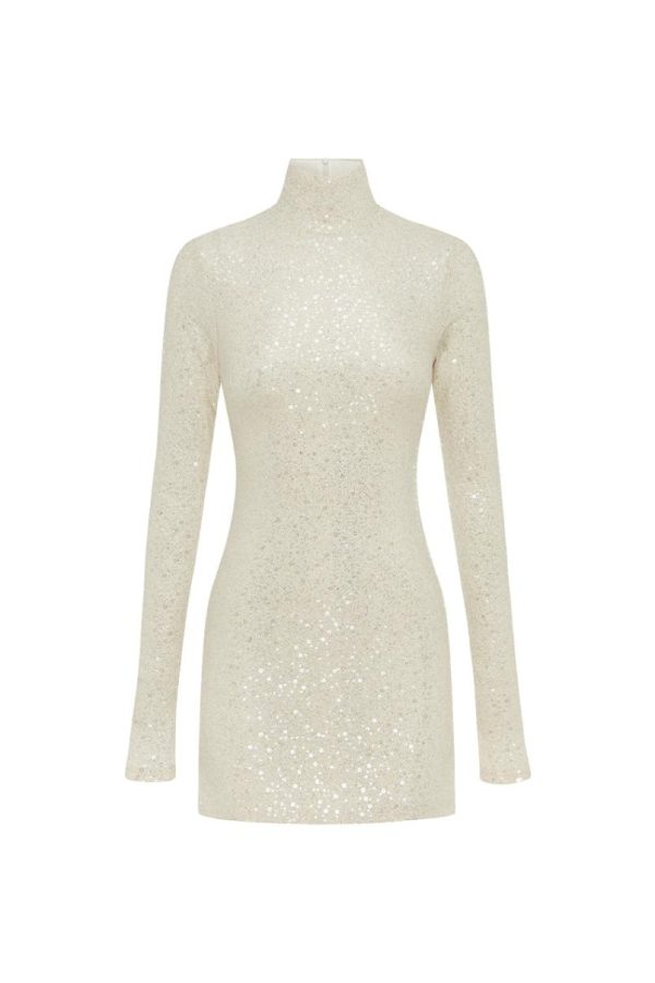 Make a stunning entrance in our CHLOE Mini Dress, crafted from dazzling sequined fabric that contours your silhouette with effortless elegance. Featuring sophisticated full-length sleeves and a chic mock neckline, this dress delivers a sleek, glamorous look perfect for special occasions.