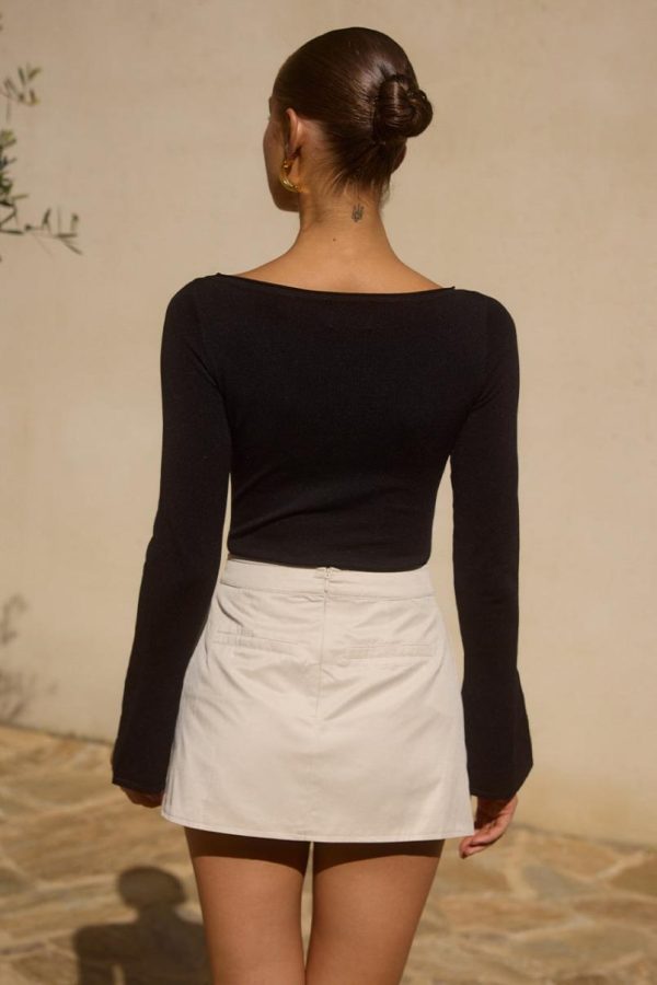Featuring a boat neckline and a subtle bell sleeve, our Cruz Top is crafted from a luxe knit fabric for a chic winter vibe, match this with our Tatum Mini Skirt for the complete look.