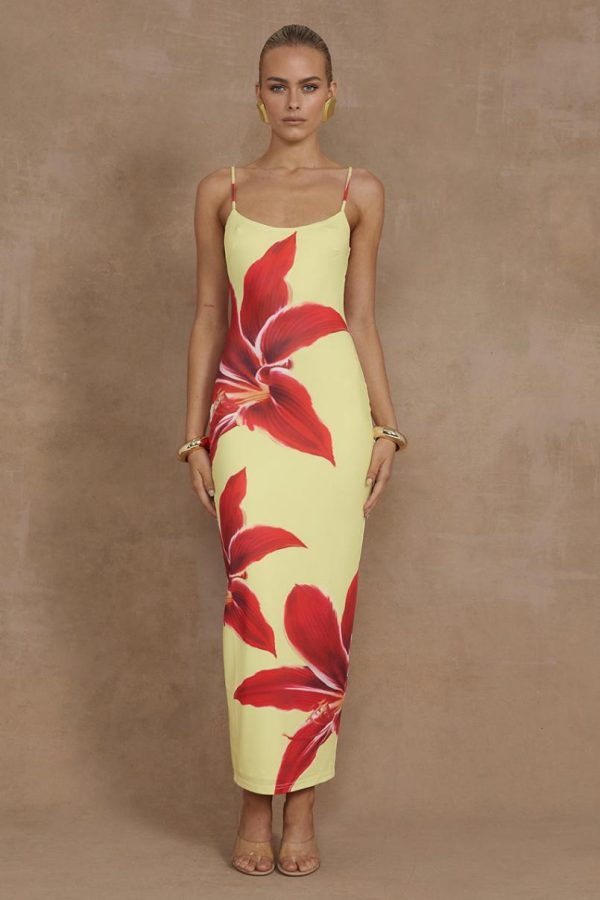 Our Deia Midi Dress is crafted from a luxe second skin fabric, with thoughtfully placed florals, it’s sure to be a favourite for a feminine look.
