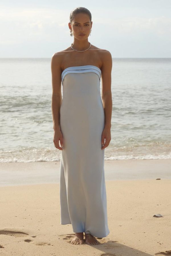Our Delilah Maxi Dress features a folded strapless neckline for a simple and chic look.