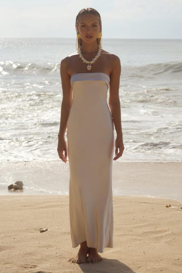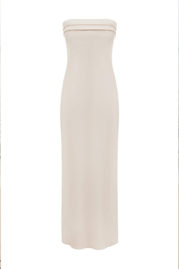 Our Delilah Maxi Dress features a folded strapless neckline for a simple and chic look.