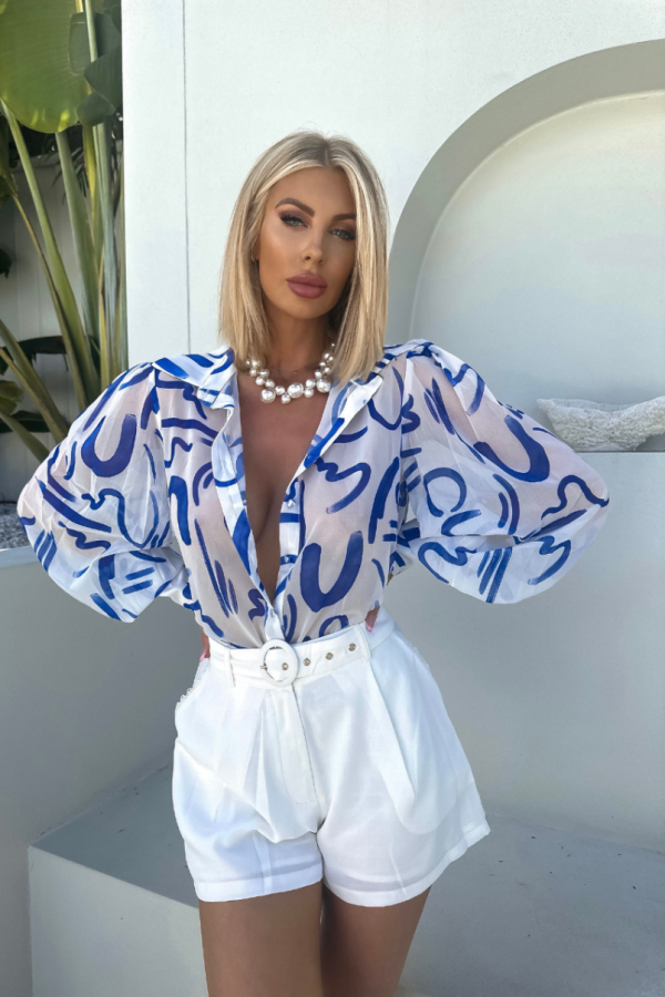 Discover our effortlessly chic Fleetwood Blouse featuring a relaxed, comfortable fit with a classic button-up design and elegant collar. This stylish top showcases a center-front button closure and sophisticated long puff sleeves with beautiful button detailing for added flair. The lightweight fabric offers a delicate sheer appearance with no lining and no stretch for a graceful drape. 100% Polyester. Please refer to care label for garment care instructions. Colours may appear slightly different to the website due to lighting, computer picture resolution and monitor settings. Print placement may vary between each individual item.