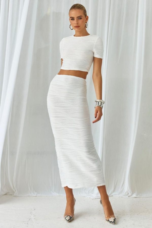 Our effortlessly chic Kirra Top features a contemporary cropped length with a sophisticated high neckline and versatile short sleeves crafted from a beautiful textured fabric. Create the perfect coordinated ensemble by pairing this with our matching Kirra Midi Skirt. This stylish piece is unlined with a delicate sheer quality and offers comfortable stretch for easy movement. Fabric: 95% Polyester and 5% Spandex. Please refer to care label for garment care instructions, Colours may appear slightly different to the website due to lighting, computer picture resolution and monitor settings.