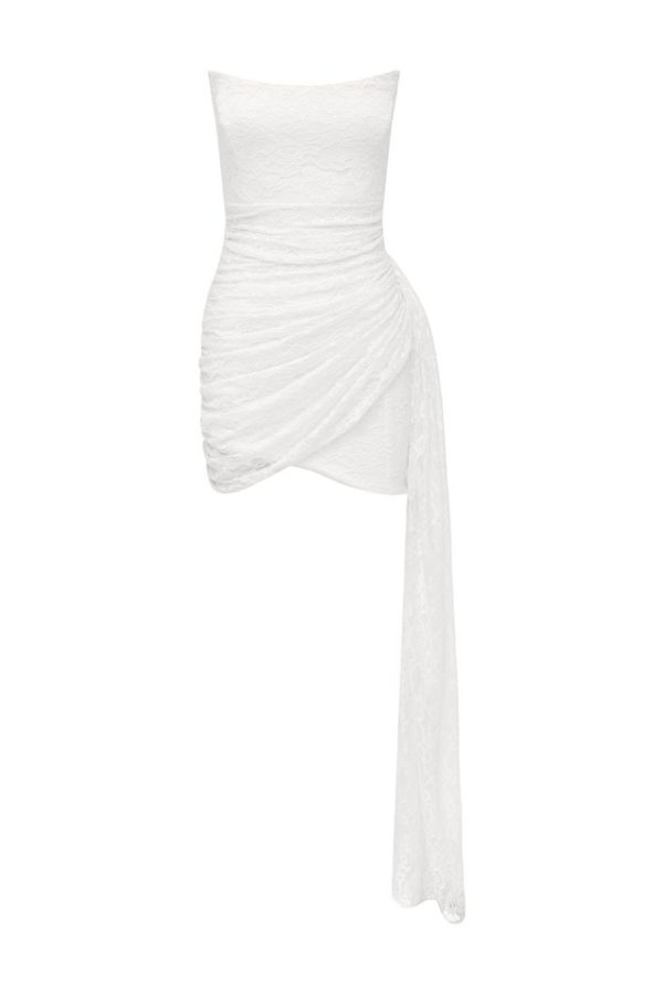 Our stunning Lacey Mini Dress features exquisite lace construction with structured boning that sculpts the bodice for a flawless bridal silhouette.