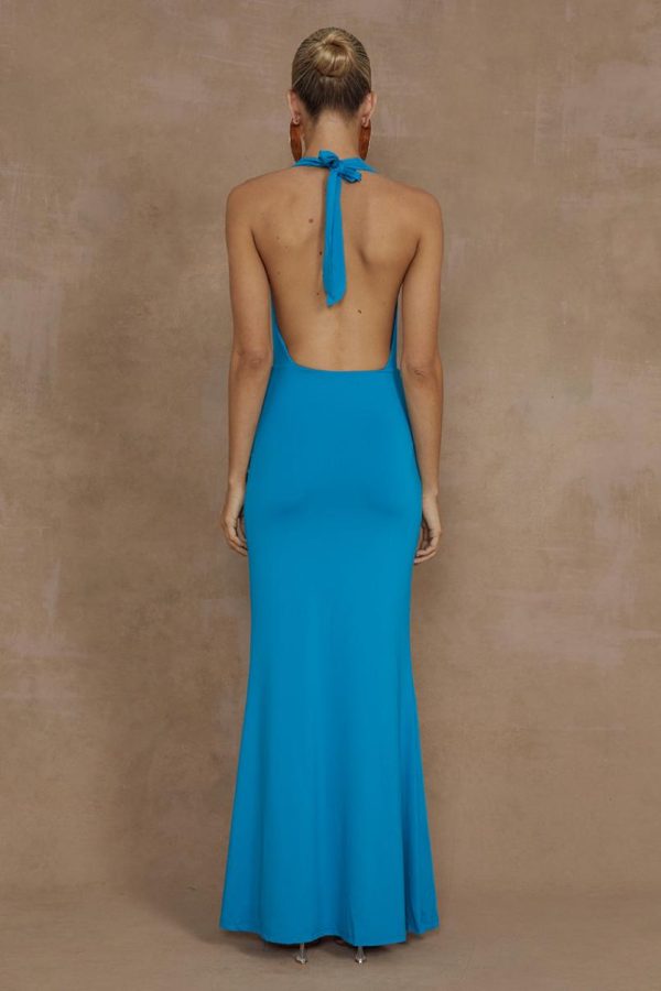 Make a stunning entrance with our Lorita Maxi Dress, featuring a dramatic plunging neckline and elegant open back design that creates the perfect sophisticated look for your next special occasion.
