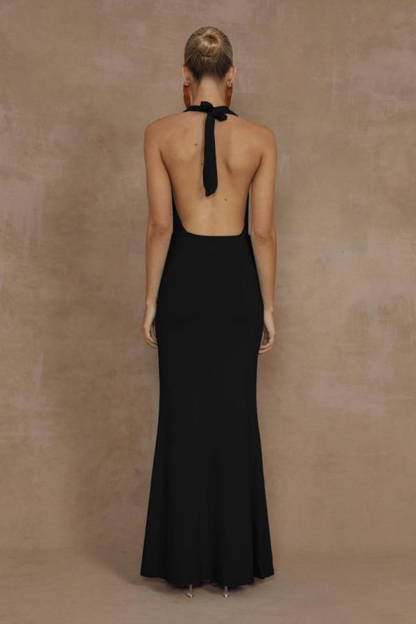 Featuring a plunging neckline and open back, our Lorita Maxi Dress is the perfect sultry look for your next date night.