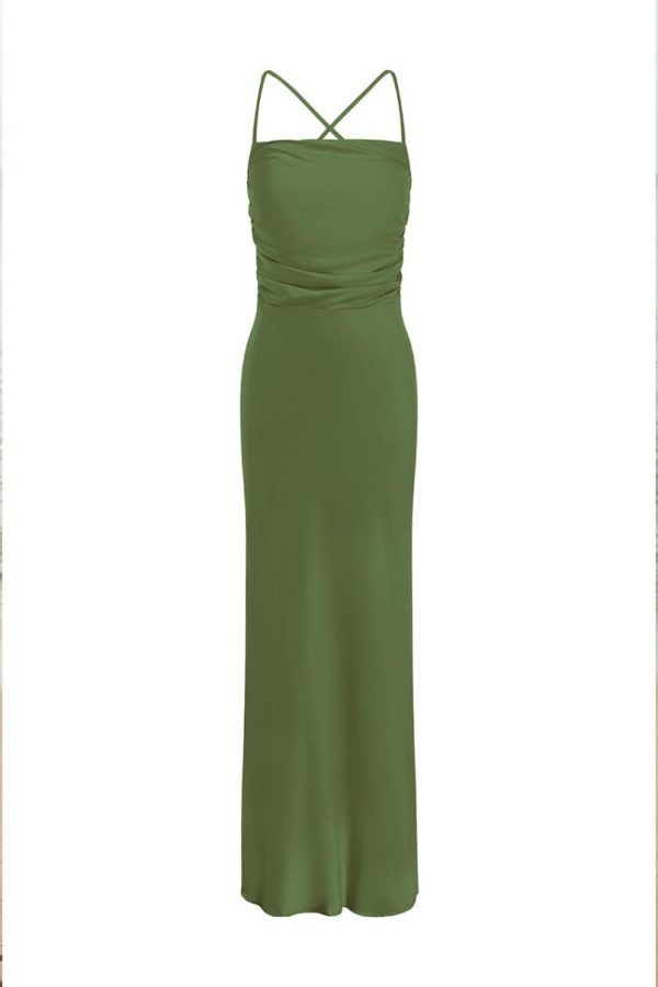 Our stunning Lucienne Maxi Dress showcases an elegant back tie closure and sophisticated ruching that creates beautiful texture and flattering dimension for a truly captivating silhouette.