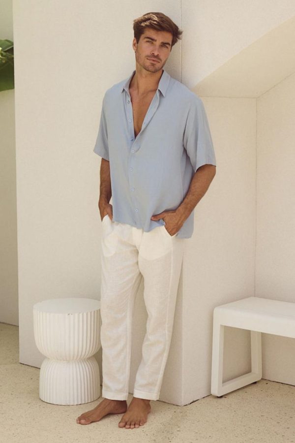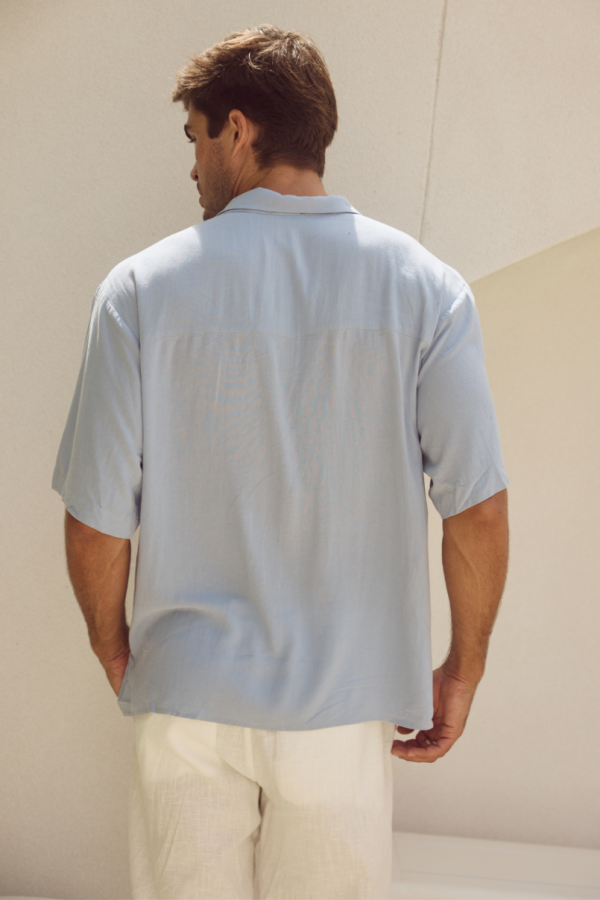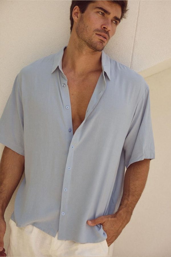 Men’s Blue JAYDEN SHIRT – Relaxed Fit V-Neck Top by Runaway The Label