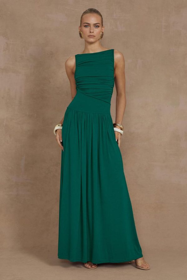 Discover the Nalla Maxi Dress, your new go-to for effortless sophistication. Featuring a chic boat neckline and elegant ruching throughout, this versatile dress delivers timeless style that transitions seamlessly from day to evening.