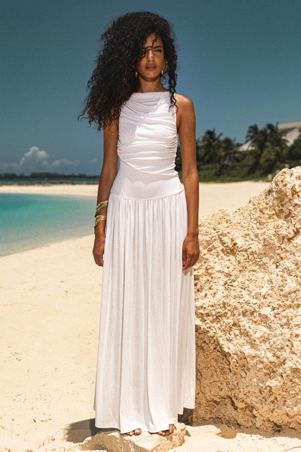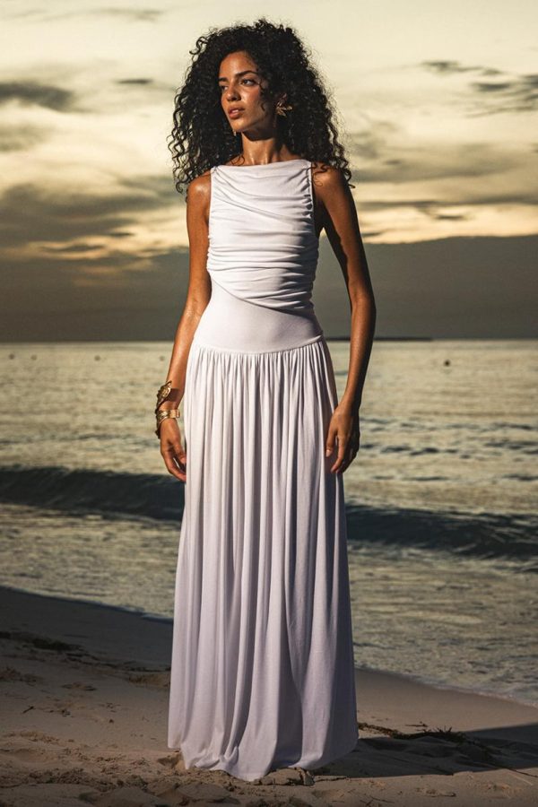 Discover the perfect blend of sophistication and comfort with our Nalla Maxi Dress, featuring a graceful boat neckline and elegant ruching detail that creates a flattering silhouette for any occasion.