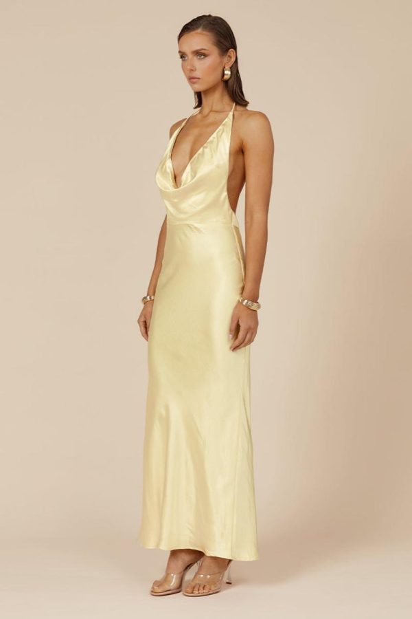 Designed with an effortlessly feminine silhouette, our sleek Posey Maxi Dress creates the perfect party-ready look with its dramatic cowl neckline and stunning open back design.