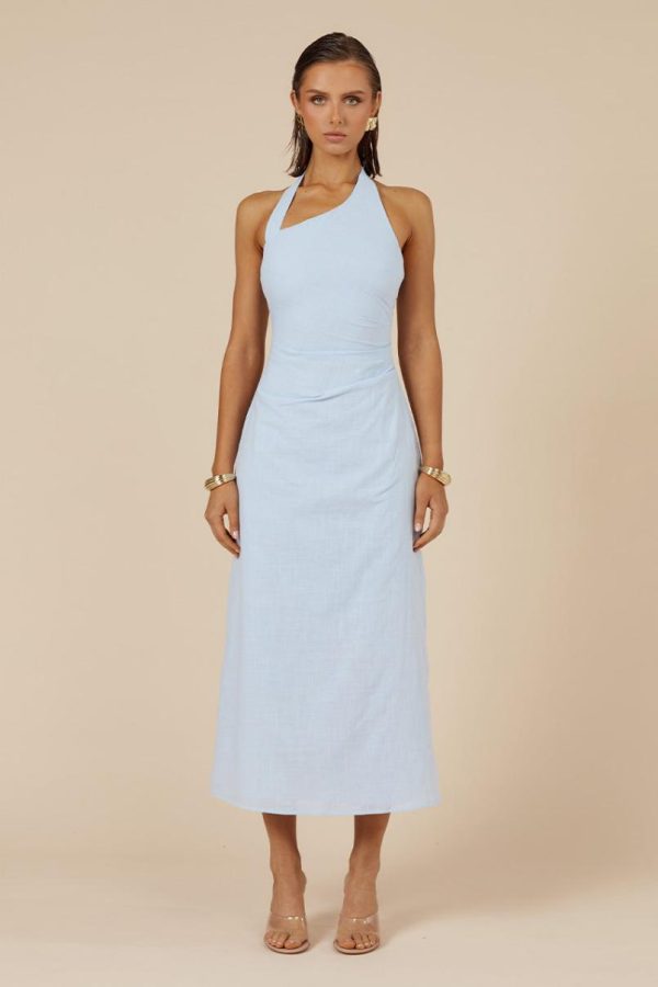 Meet the Saphira Long Midi Dress, featuring a stunning asymmetrical neckline and strategic ruching at the waist that creates a beautifully elevated silhouette perfect for your next getaway or special occasion.