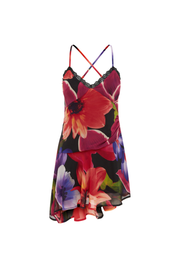 Make a stunning statement with our Surrey Mini Dress, featuring delicate lace accents, a chic open back design, and beautiful floral print that’s perfect for your next special occasion.