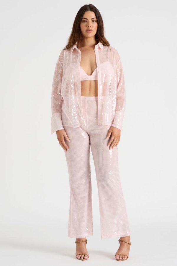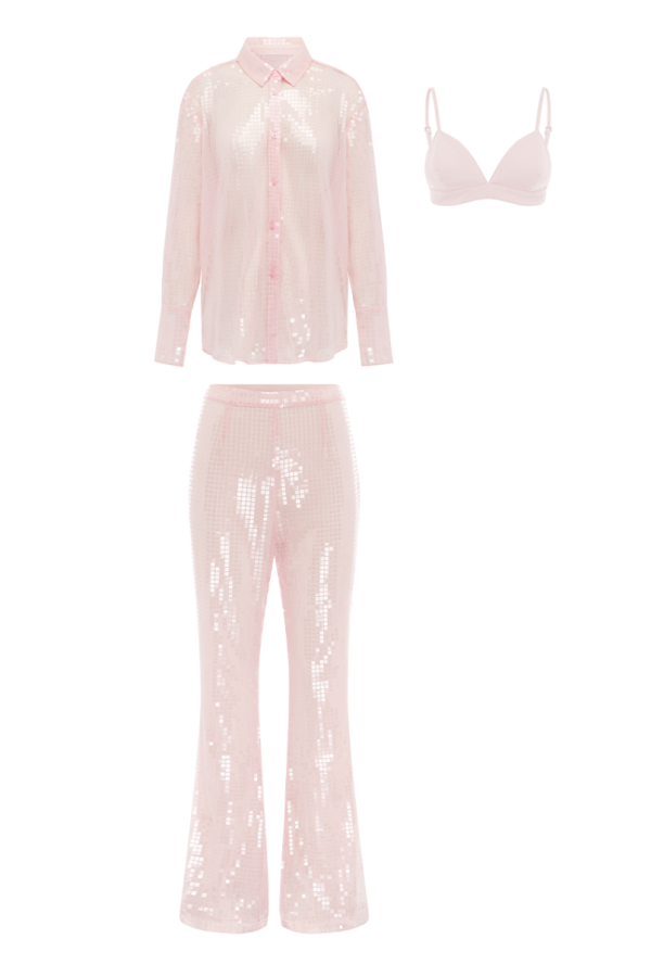 The Bra Top is a bralette that features adjustable spaghetti straps, three adjustable hook & eye closure. This garment is fully lined and has a slight stretch. Pairs perfectly with The Sequin Shirt and The Sequin Pant. Body fabric: 95% Polyester, 5% Spandex. Lining: 94% Polyester, 6% Spandex.Please refer to care label for garment care instructions. Colours may appear slightly different to the website due to lighting, computer picture resolution and monitor settings.