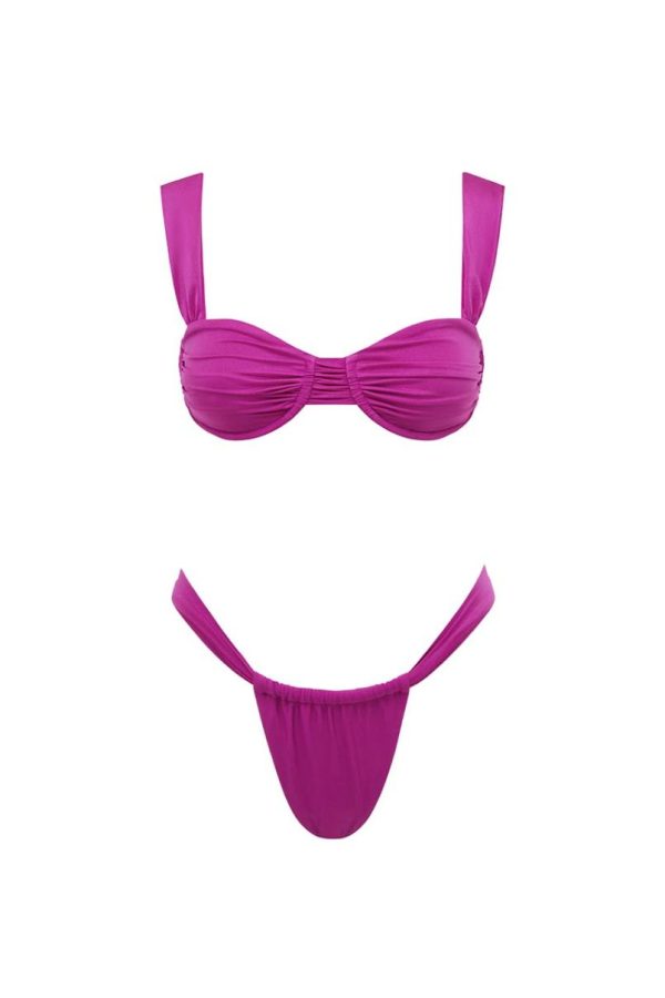 Designed for confident women who love to stand out, our Tropez top combines supportive structure with feminine appeal through its underwire construction and adjustable wide straps. The flattering balconette silhouette creates beautiful shape while the ruching detail enhances your natural curves.