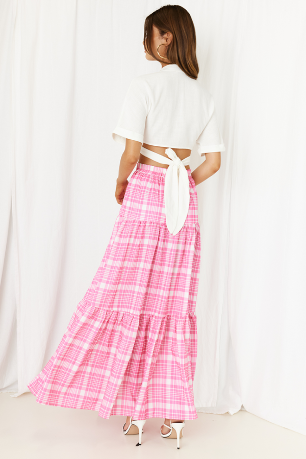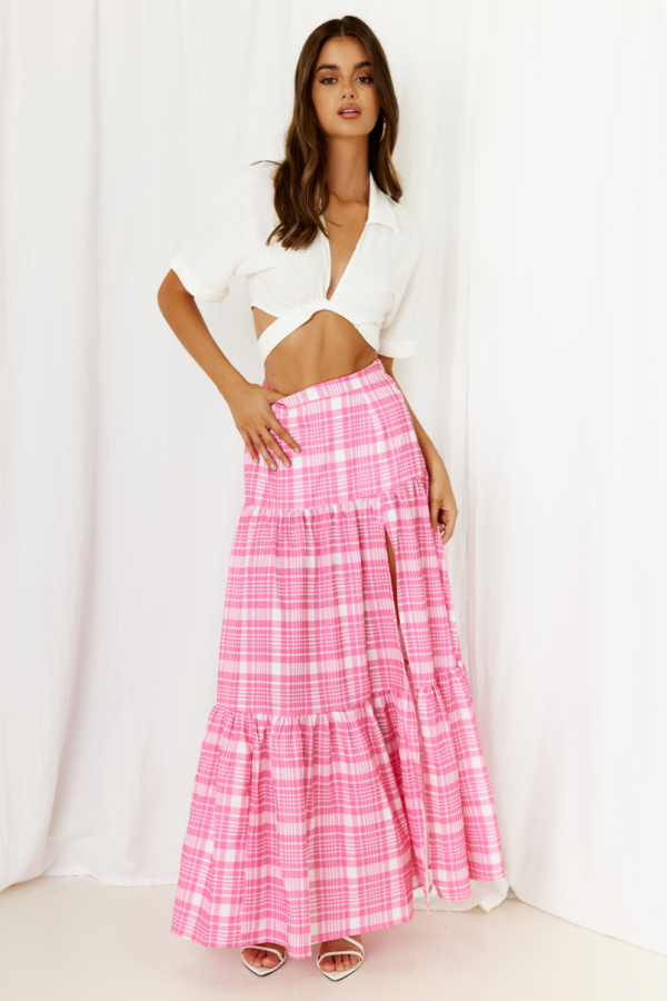 Our Valence Maxi Skirt is a maxi length, a hoop skirt with tiered, a leg split, an invisible side seam zipper, and elastic in the back waistband. This garment has lining and no stretch. 100% Polyester. Please refer to care label for garment care instructions. Colours may appear slightly different to the website due to lighting, computer picture resolution and monitor settings.