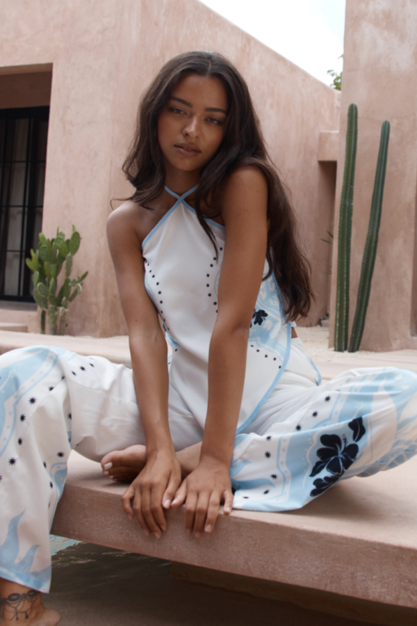 Our chic Western Top showcases an eye-catching placement print and flattering diamond silhouette, creating the perfect brunch-ready ensemble. Style with our Western Pant for a complete coordinated look.