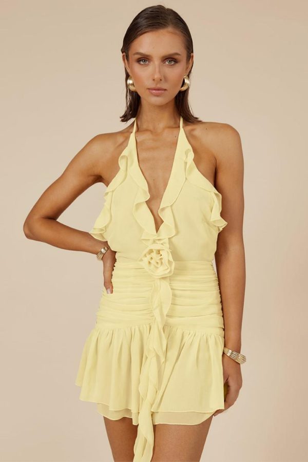 With a deep V neckline, layers of flowing ruffles and appliquéd flower the Zelie Mini is your perfect flirty mini.